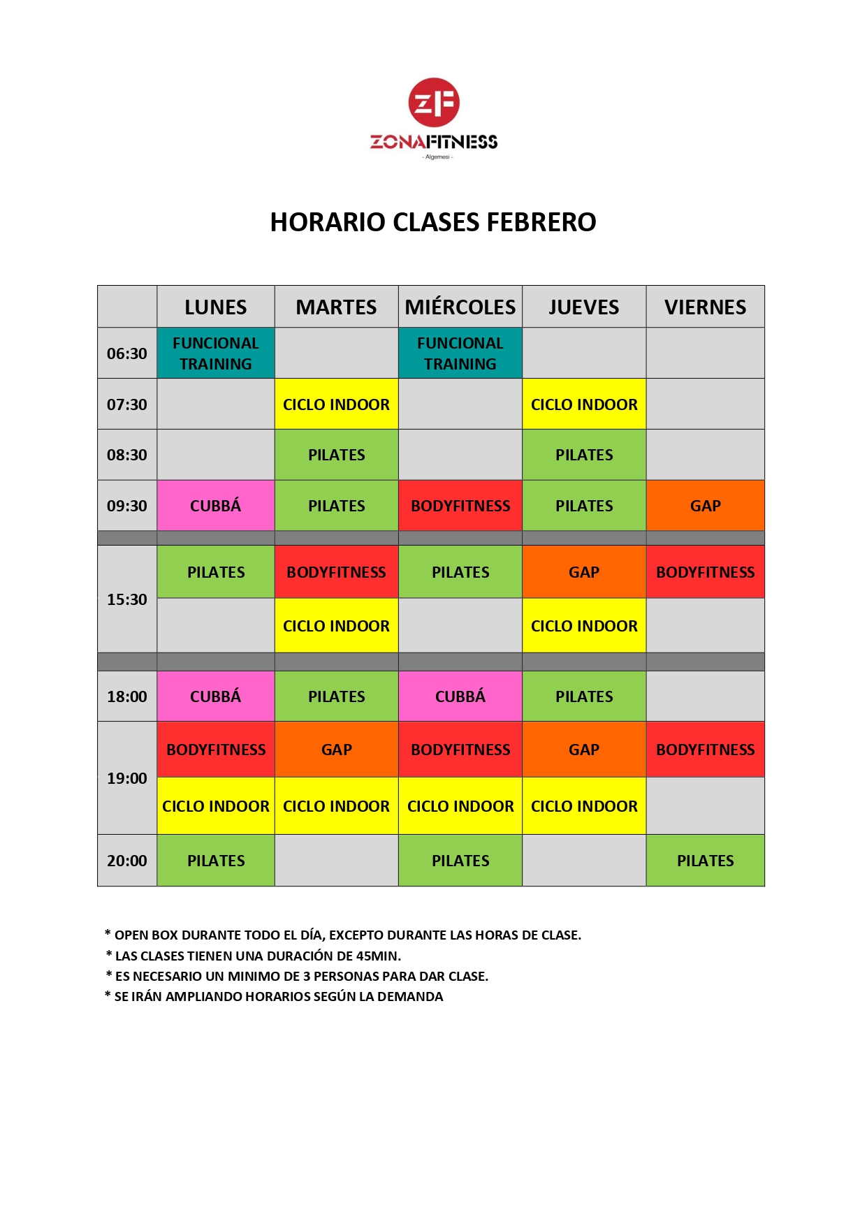 *LAS CLASES TIENEN UNA DURACIÓN DE 45MIN
